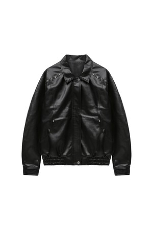 [25FW] RIVET FAKE LEATHER JACKET (BLACK)