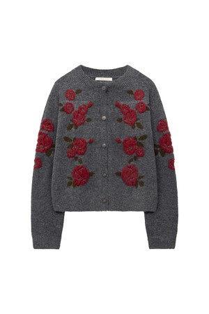 [25WINTER] ROSE JACQUARD CARDIGAN (GREY)