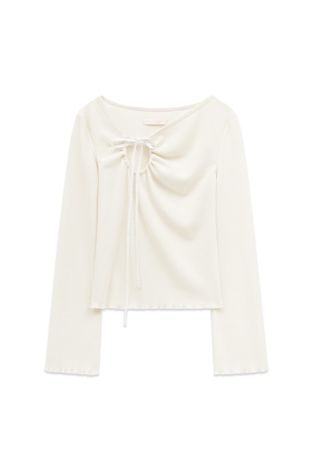 [26SPRING] LACE RIBBON CUT OUT T-SHIRT (CREAM)