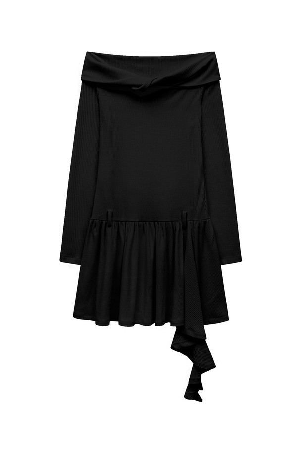 [26SPRING] OFF SHOULDER RUFFLE DRESS (BLACK)