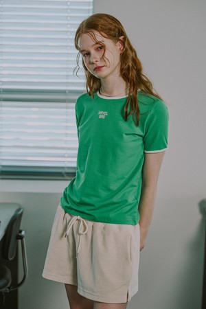 립배색 로고 자수 반소매 티셔츠