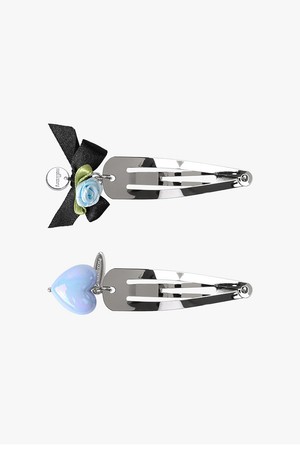 블루 리본 헤어핀 세트 (스카이블루)