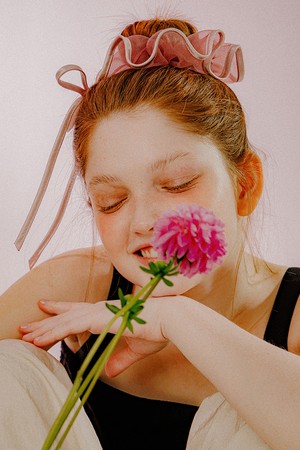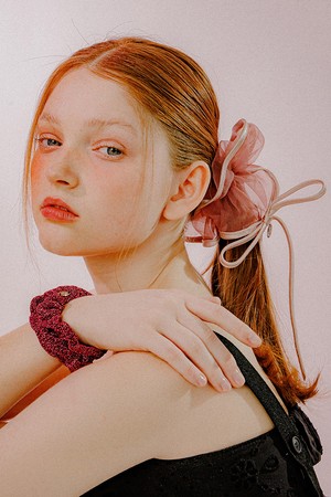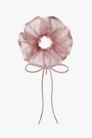 리본 트리밍 시스루 스크런치 (딥핑크)