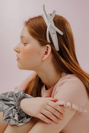 와이드 리본 사틴 헤어 밴드 (라이트그레이)