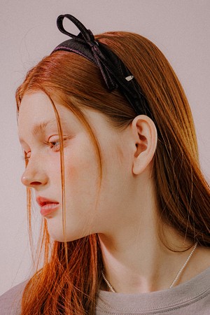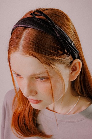 와이드 리본 사틴 헤어 밴드 (블랙)
