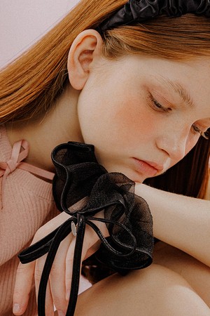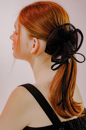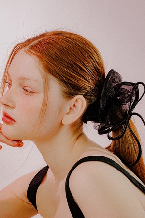 리본 트리밍 시스루 스크런치 (블랙)