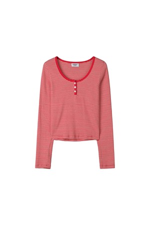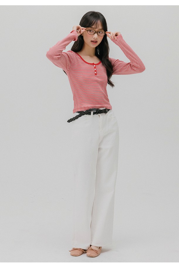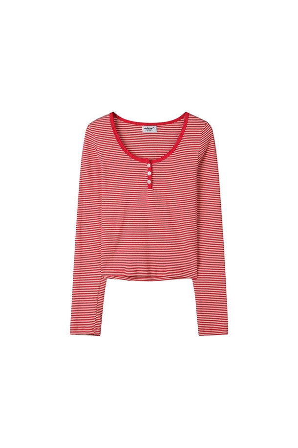 스트라이프 콤비 버튼 티셔츠 (2color)