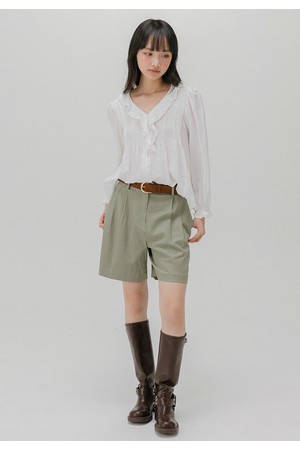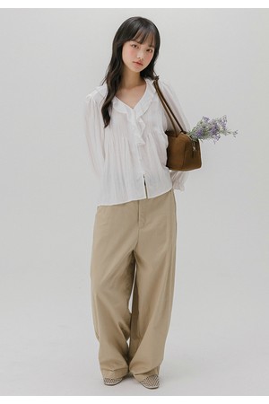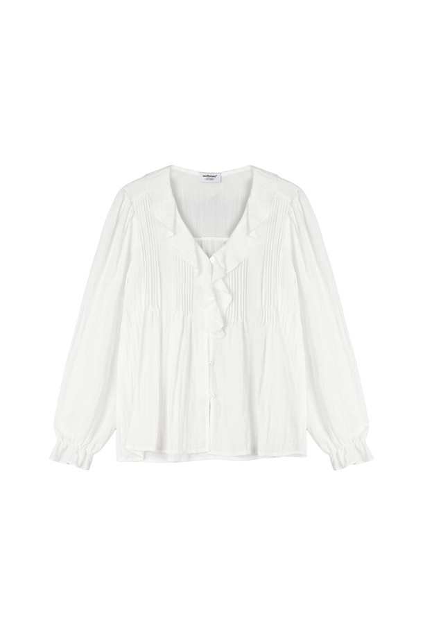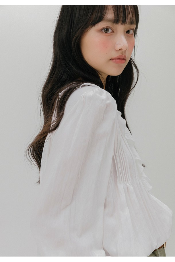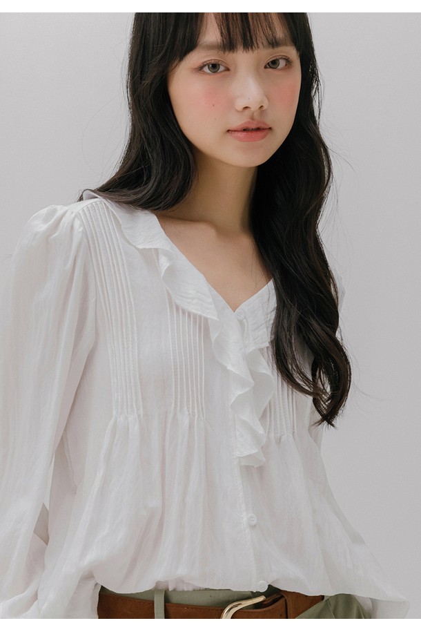 프릴 넥 핀턱 블라우스 (화이트)