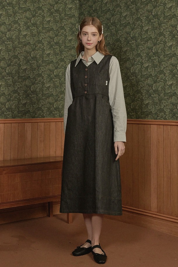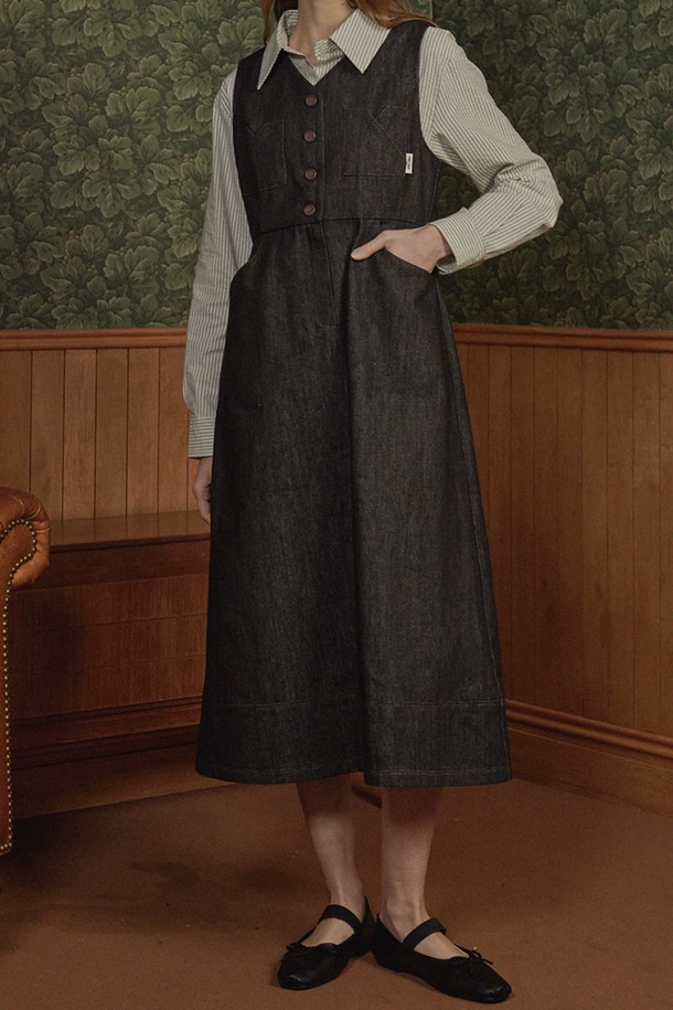 소노러스 데님 포켓 롱 드레스 블랙 데님