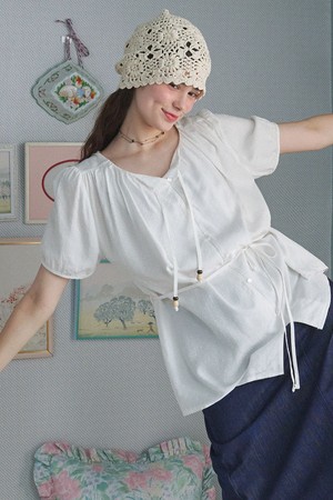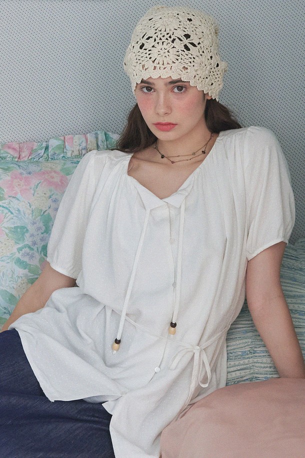 리아 도트 스트랩 블라우스