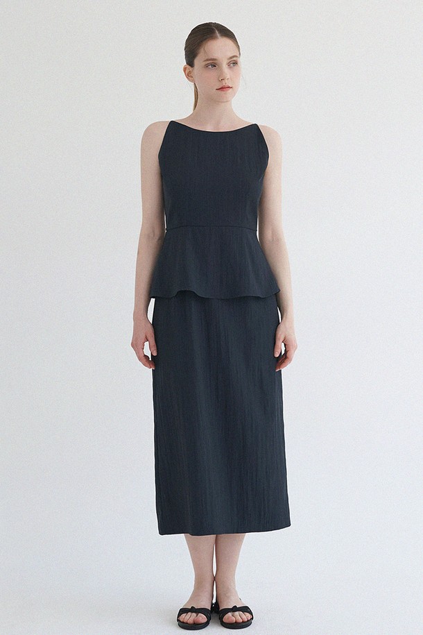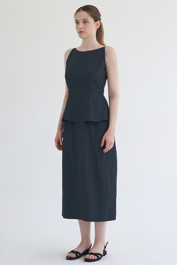 로웰 슬리브리스 페플럼 롱 드레스