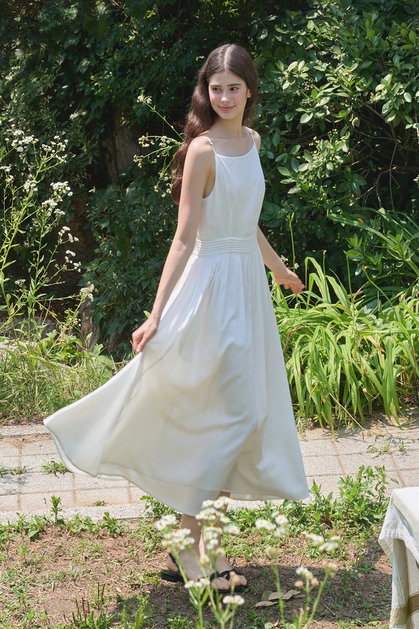 필로메나 도트 슬리브리스 롱 드레스
