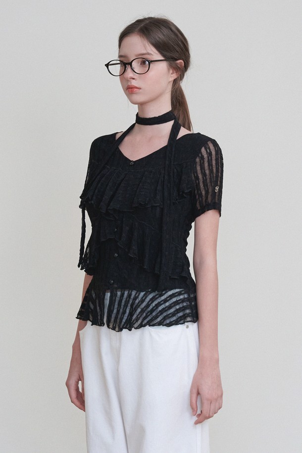 베가 레이스 타이 블라우스