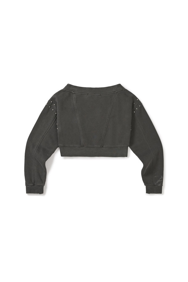 [MMW] DYED OFF-SHOULDER STUD SWEATSHIRT - CHARCOAL
