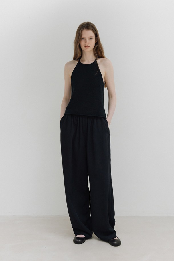 relaxed shirring pants (dark navy)
