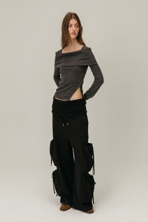FOLDOVER SHIRRING SWEATPANTS / BLACK