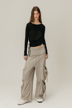 FOLDOVER SHIRRING SWEATPANTS / GREY