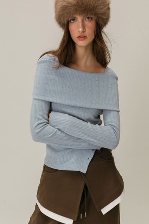 BUTTON OFF SHOULDER T-SHIRT / SKYBLUE