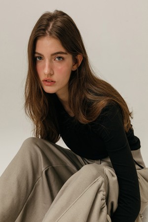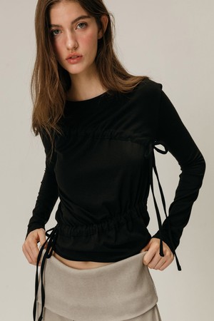 SHIRRING BOAT NECK T-SHIRT / BLACK