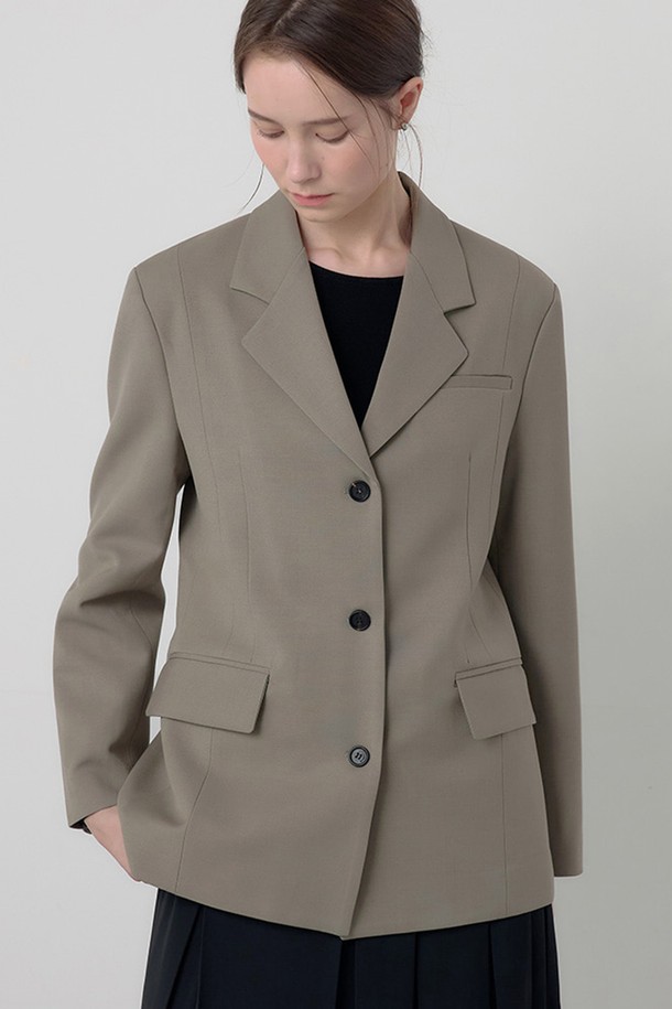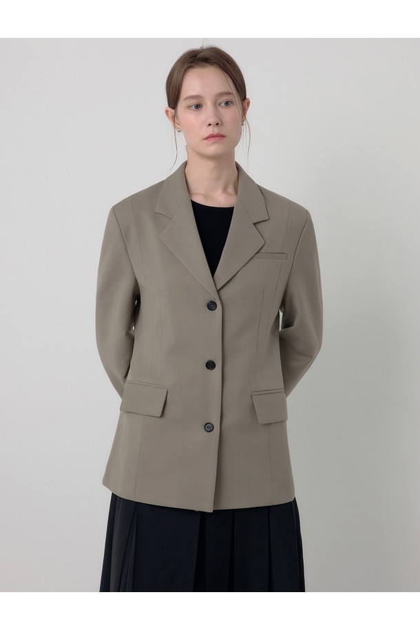 피아 싱글 테일러드 자켓 머드브라운