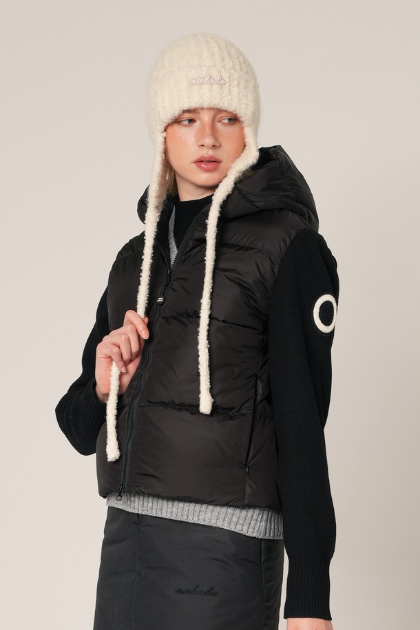 헤더 덕다운 후드 패딩자켓 BLACK