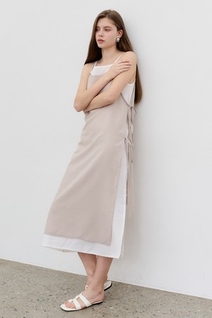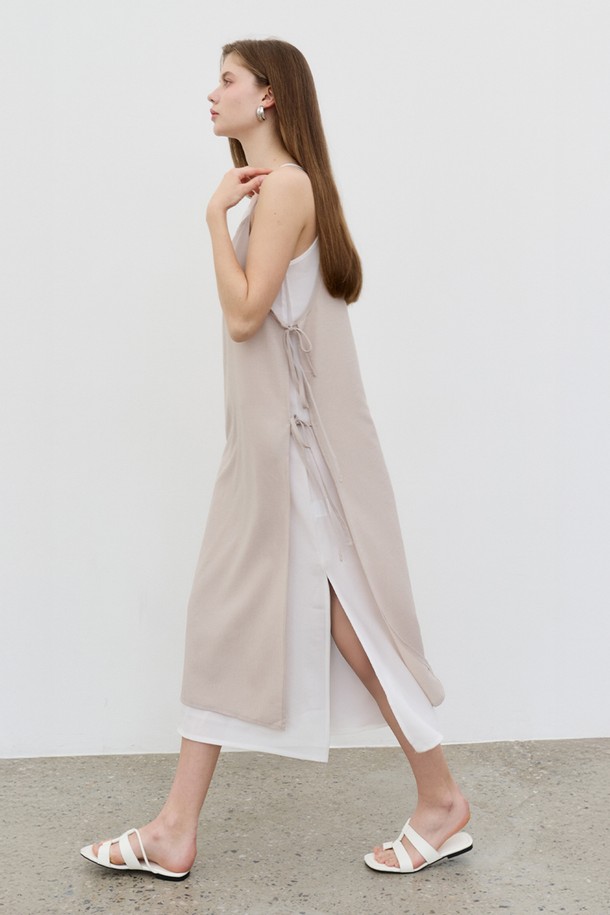 레이어드 리본 슬리브리스 드레스 LAYEAD SLEEVELESS LONG DRESS Beige