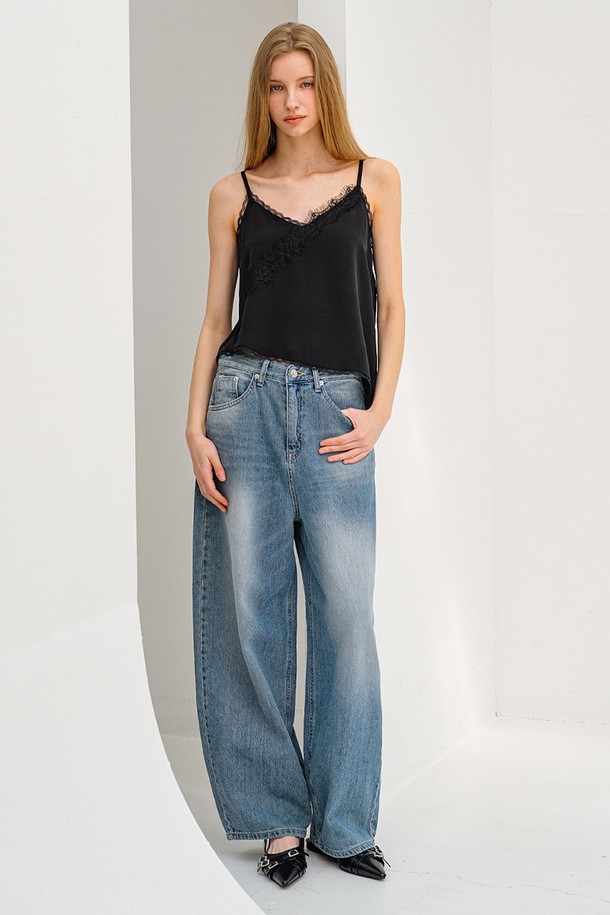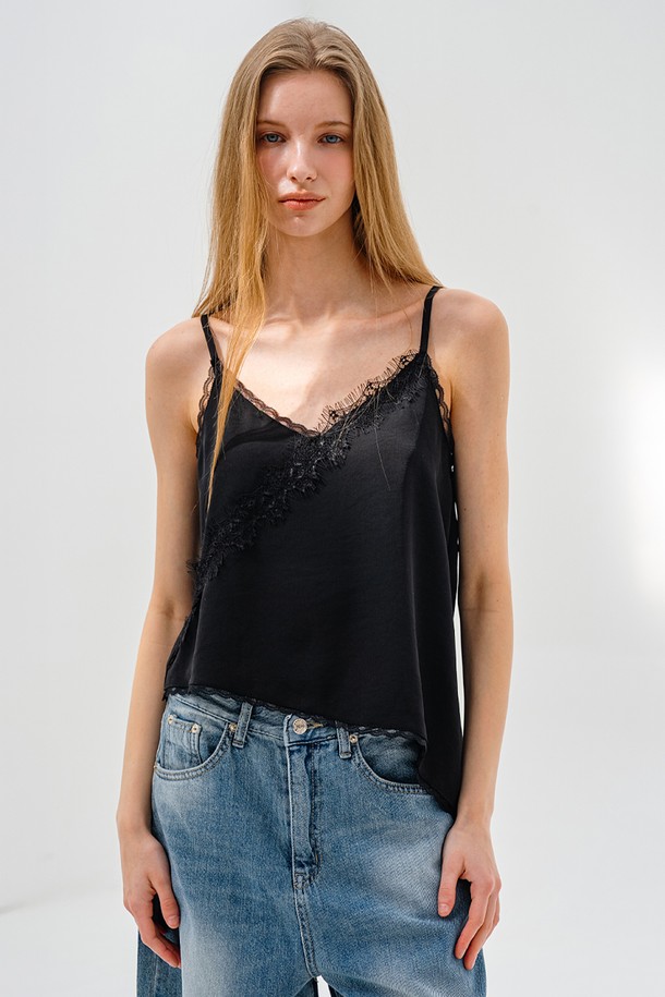 레이스 언발란스 슬리브리스 탑 BLACK