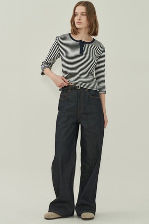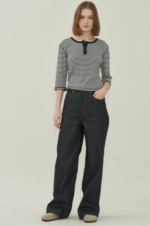 헨리넥 슬림 티셔츠 - Stripe Navy