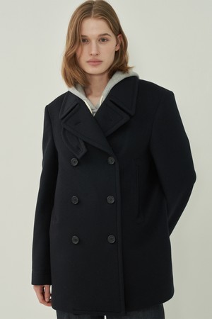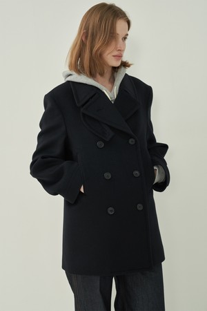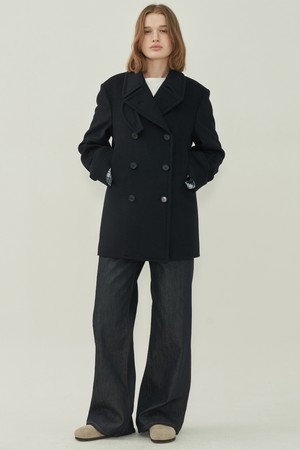 울 더블 피코트 - Black