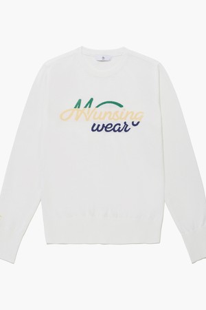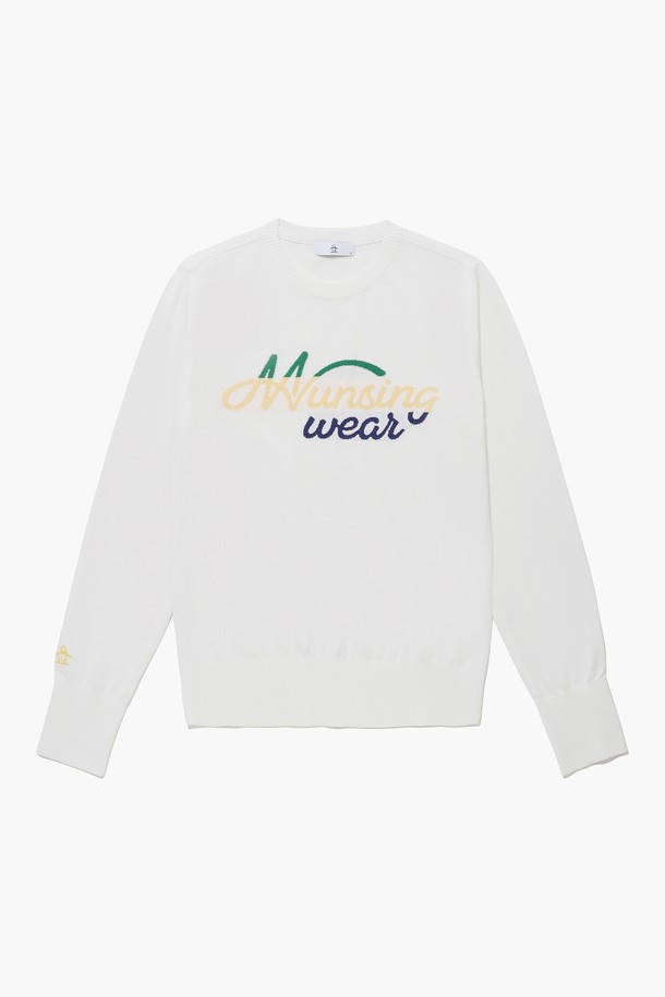 여성 레터링 로고 라운드넥 스웨터 화이트(MQ122LSW13)