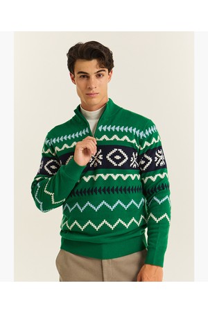 남성 홀리데이 패턴 방풍 스웨터 그린 MQ421MSWN2