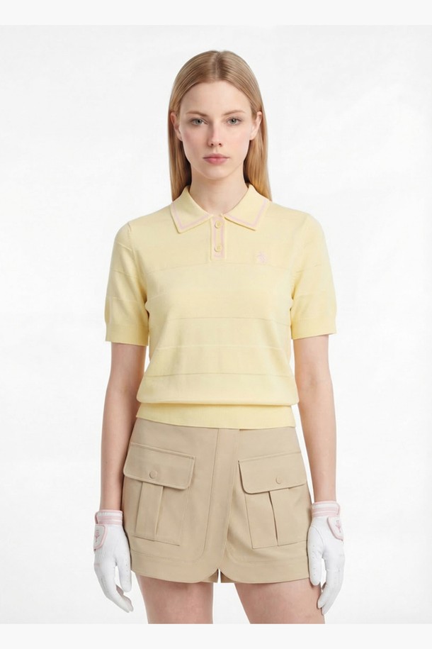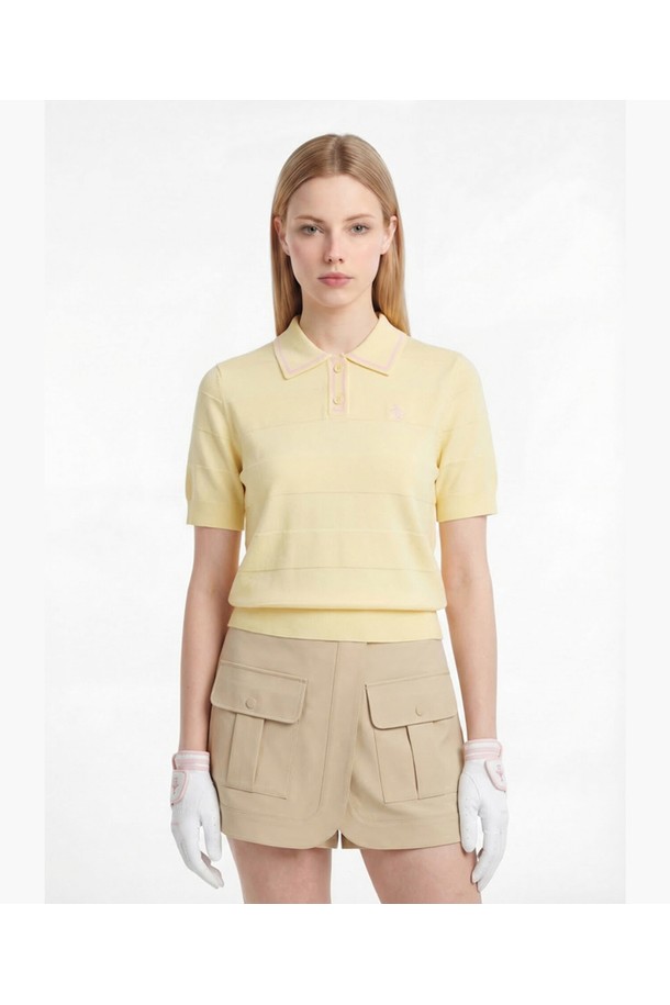 여성 가로 조직감 카라 스웨터 옐로우 MR222PSW41