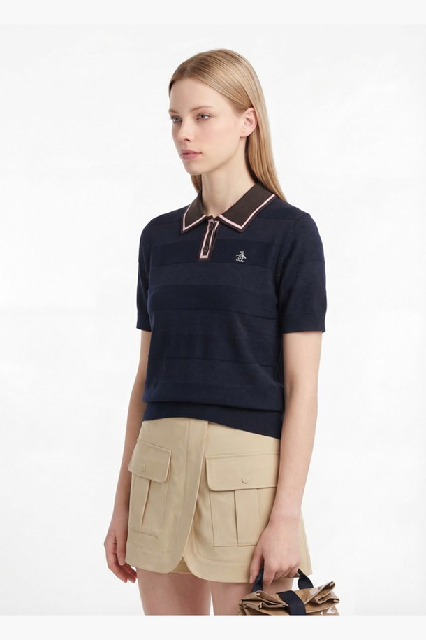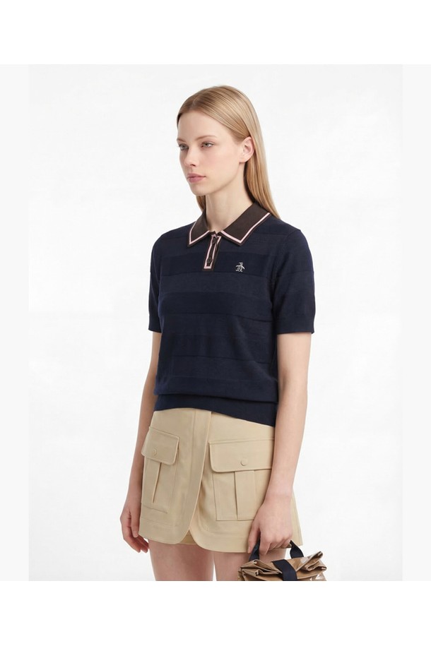 여성 가로 조직감 카라 스웨터 다크네이비 MR222PSW41