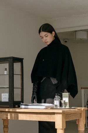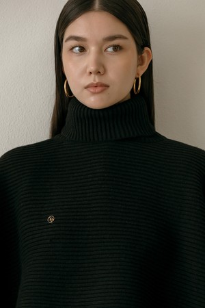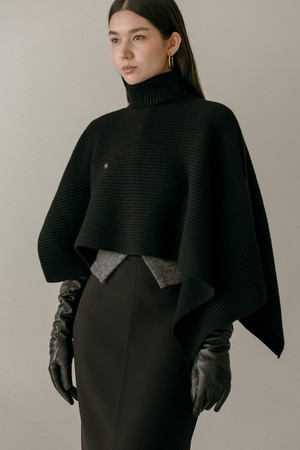 Temp Turtleneck Wool Cape Knitwear _ Black