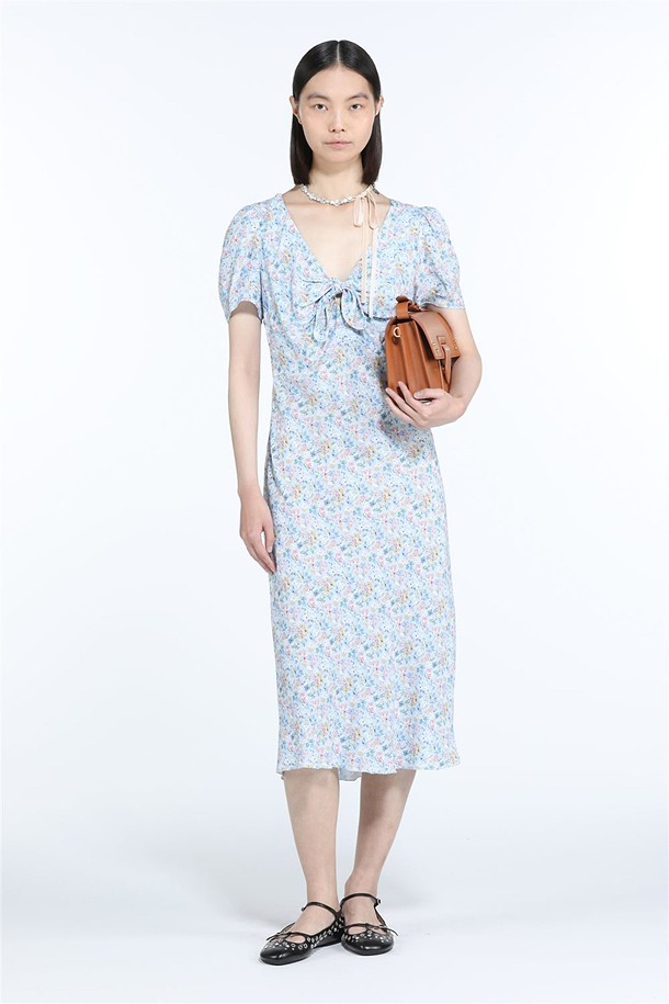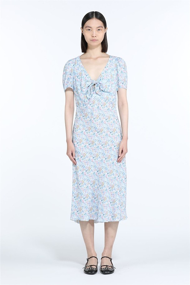 블루 플로럴 슬립 드레스