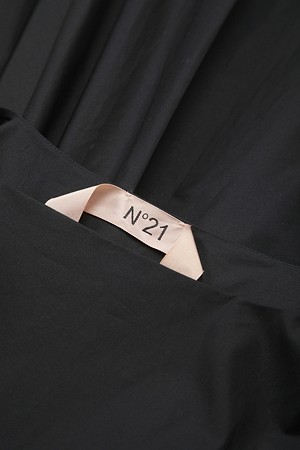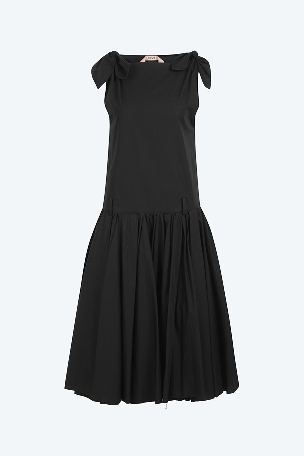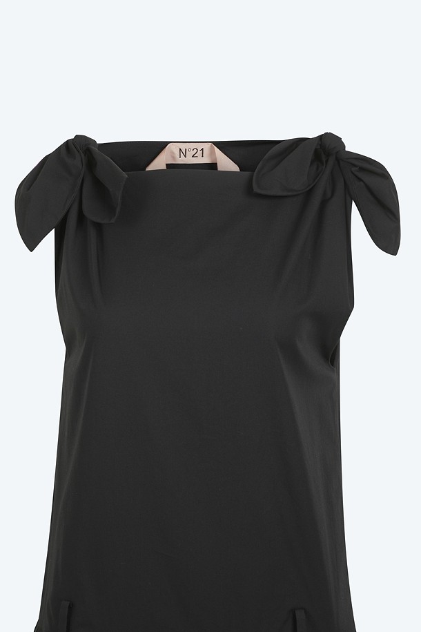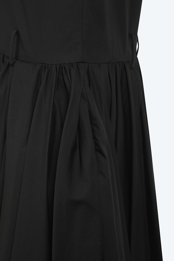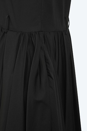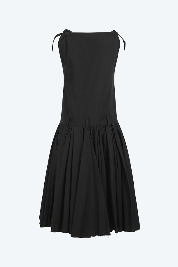 블랙 포플린 리본 슬리브리스 드레스