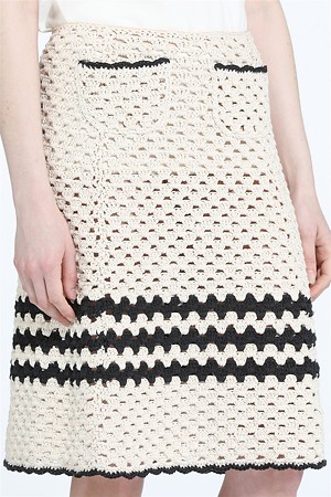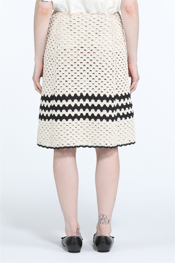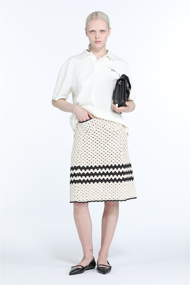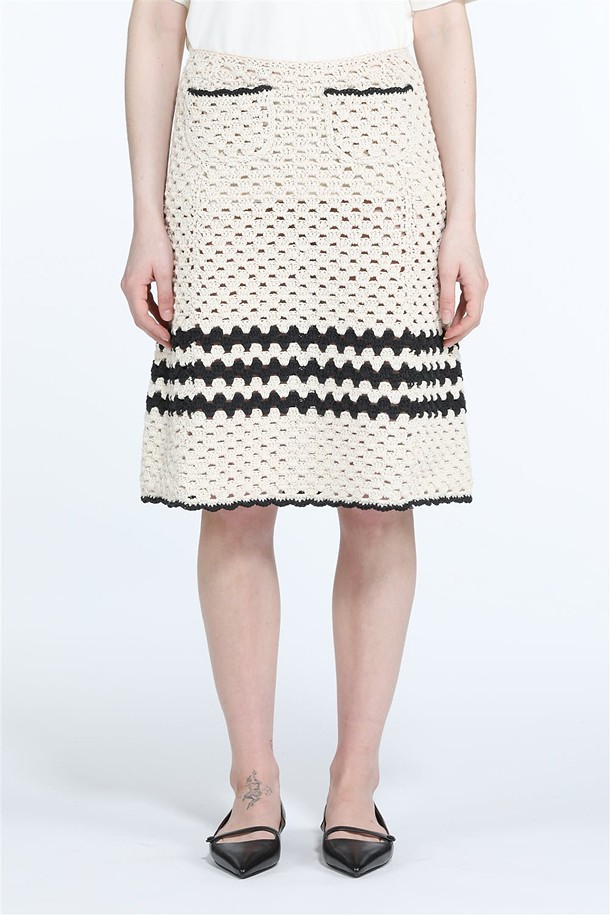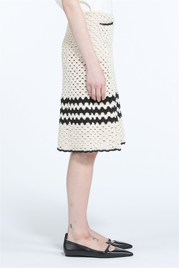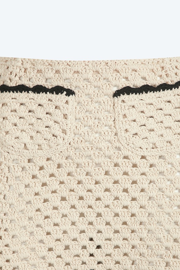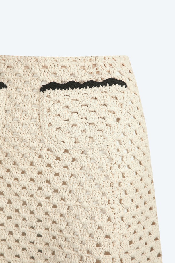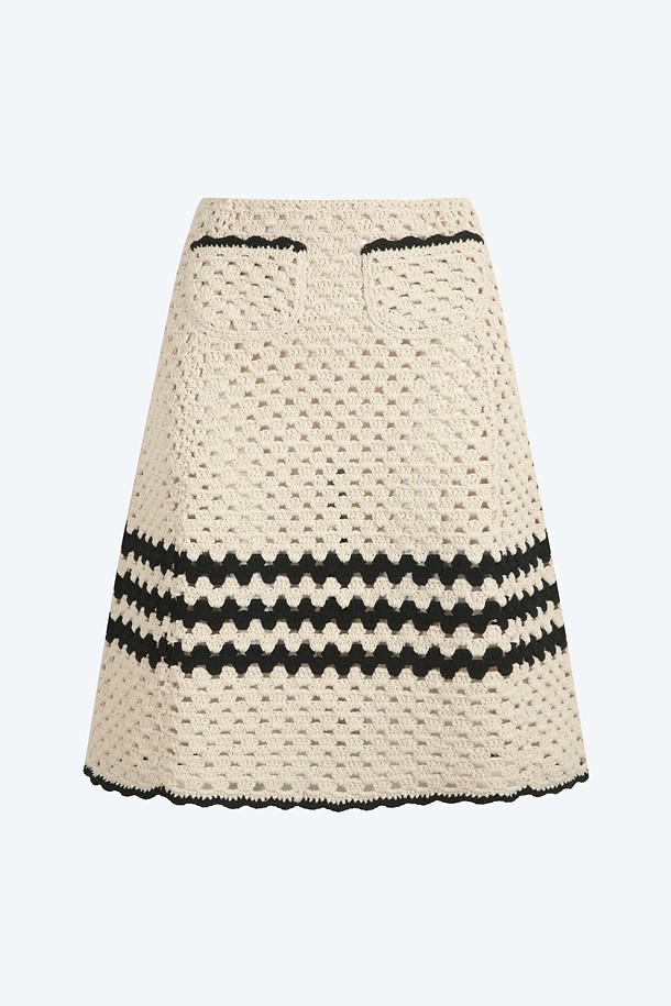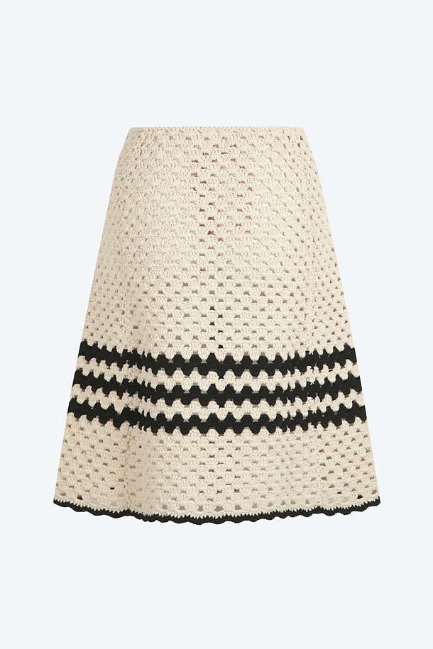 크림 코튼 트리밍 스커트