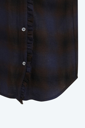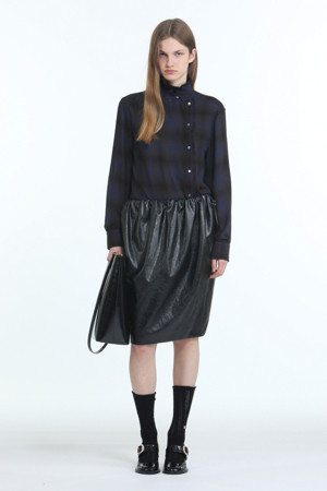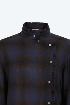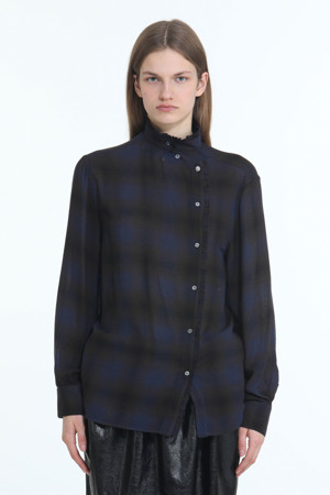 하이넥 체크 블라우스