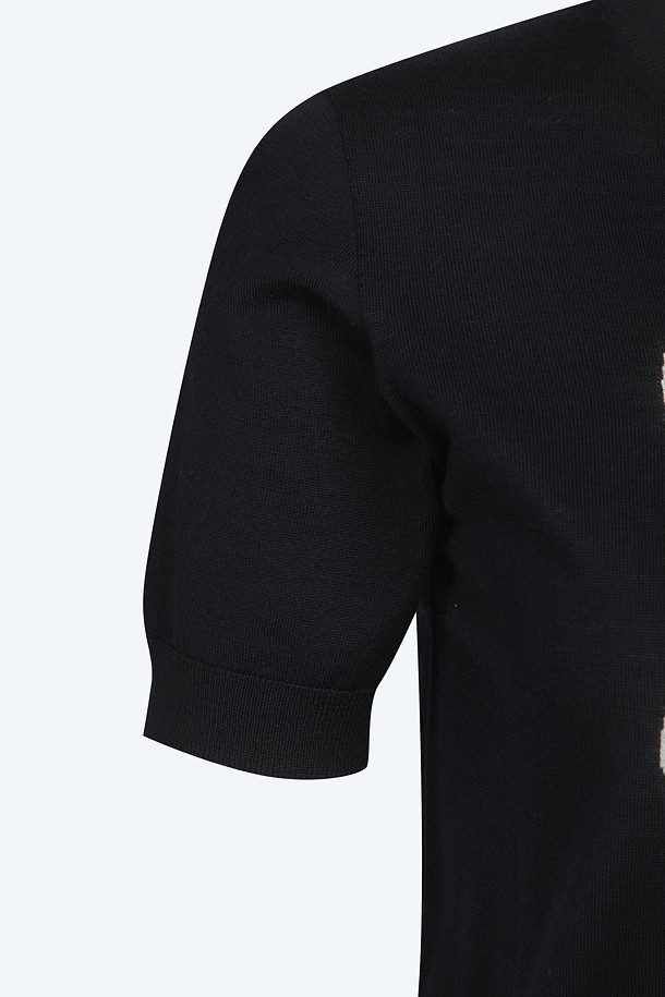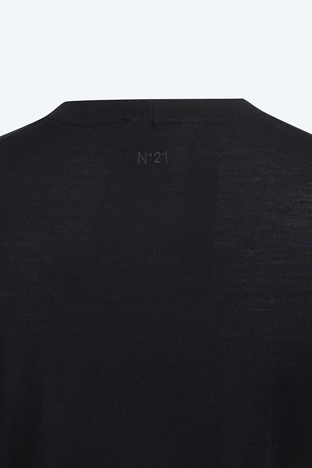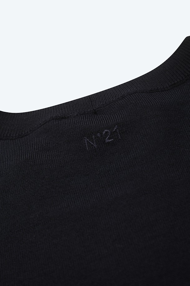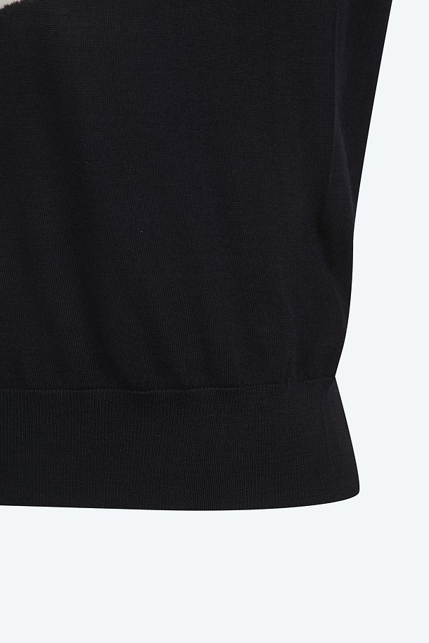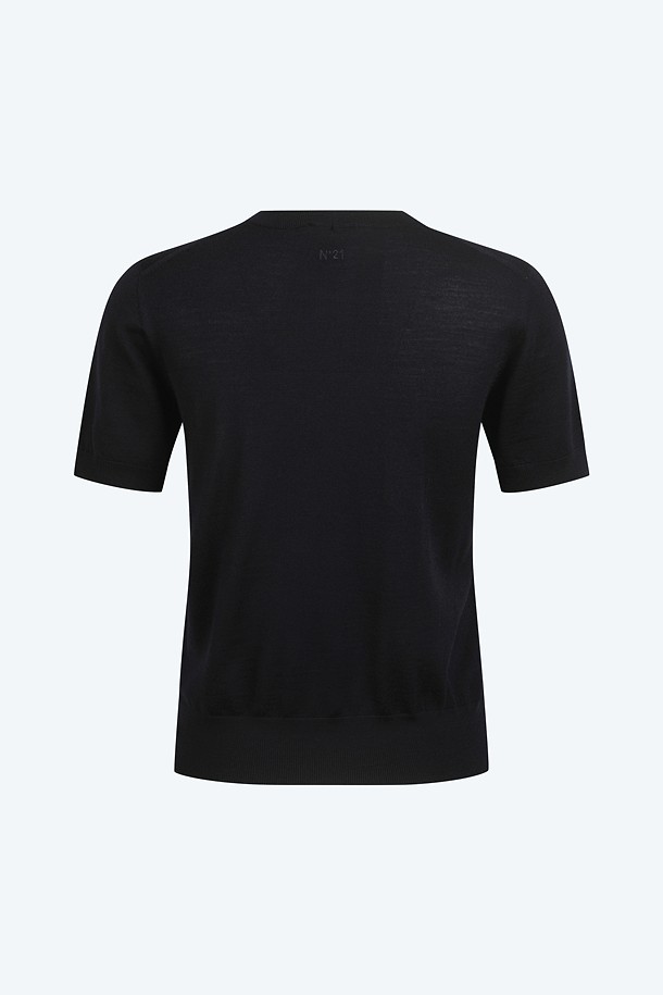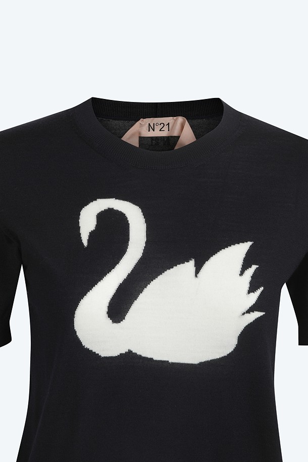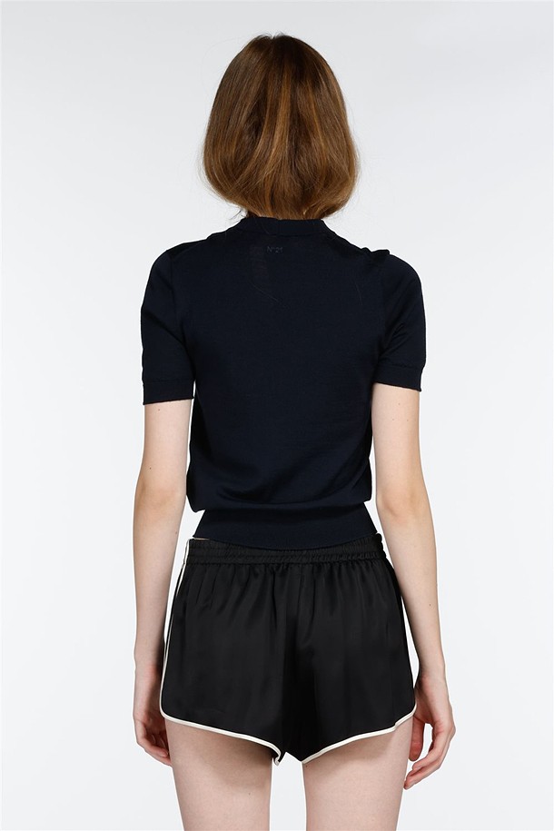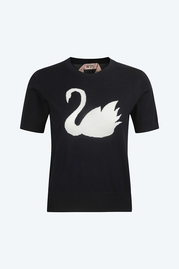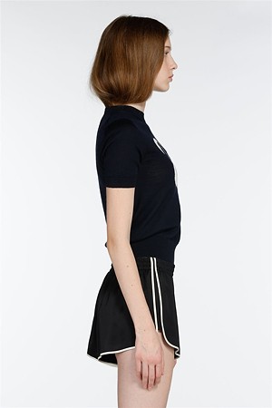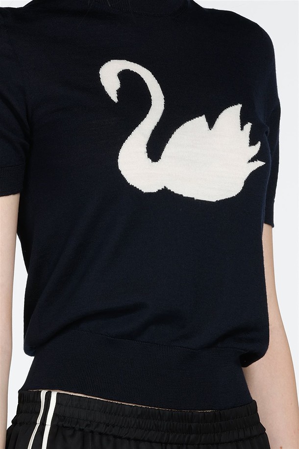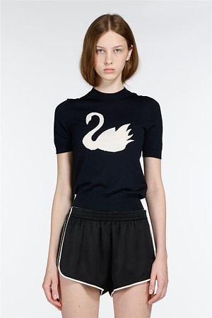 네이비 라운드넥 스완 하프 니트