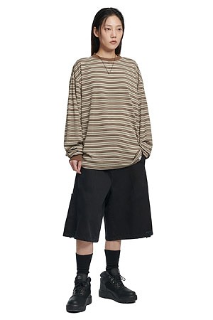 [노매뉴얼] OFFBEAT STRIPE LONG SLEEVE TEE 오프비트 스트라이프 롱 슬리브 티 - BROWN