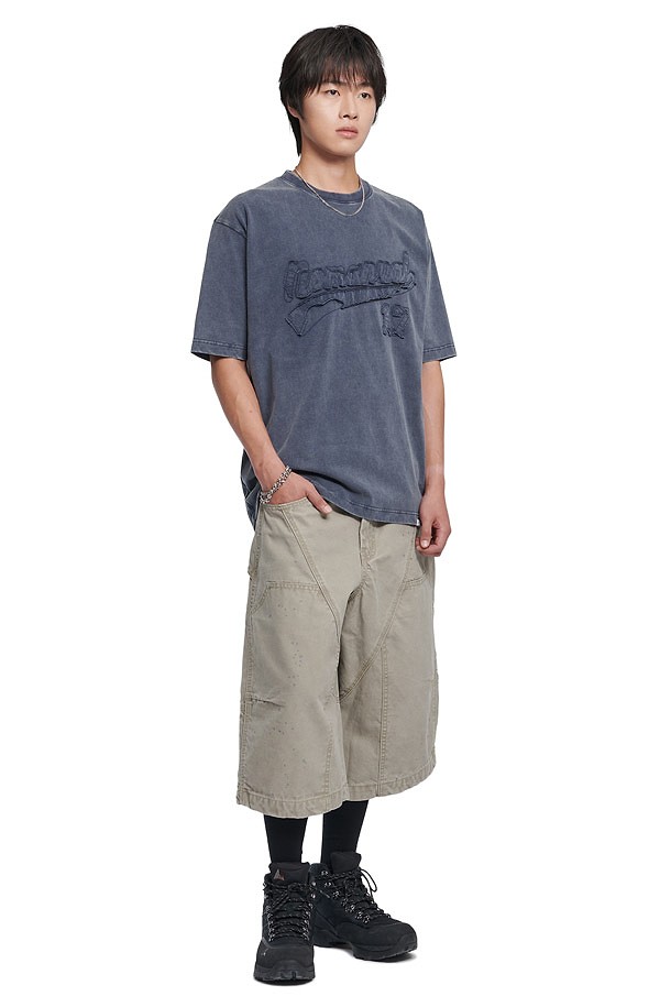 [노매뉴얼] APPLIQUE T-SHIRT 아플리케 반팔 티셔츠 - WASHED NAVY
