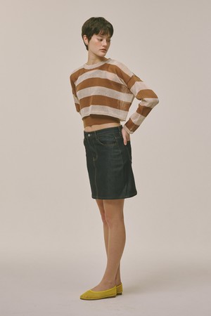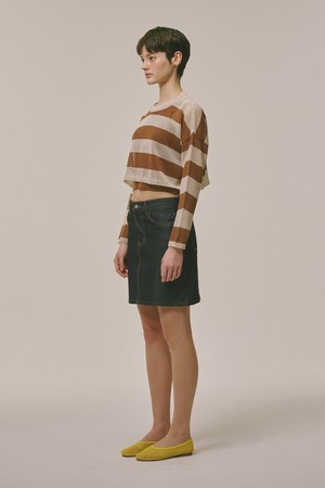 See-through Stripe Knit Top Brown