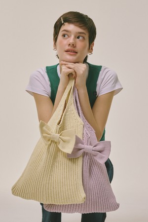 Ribbon Knit Shoulder Bag Butter Beige