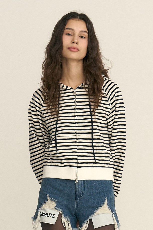 Stripe Hooded Zip-up Navy