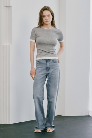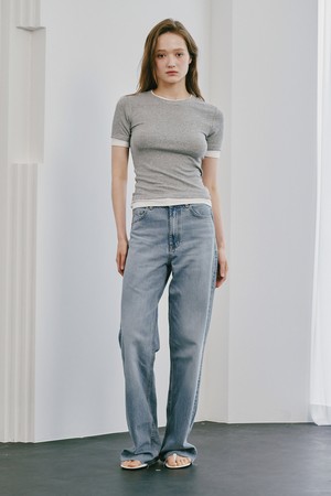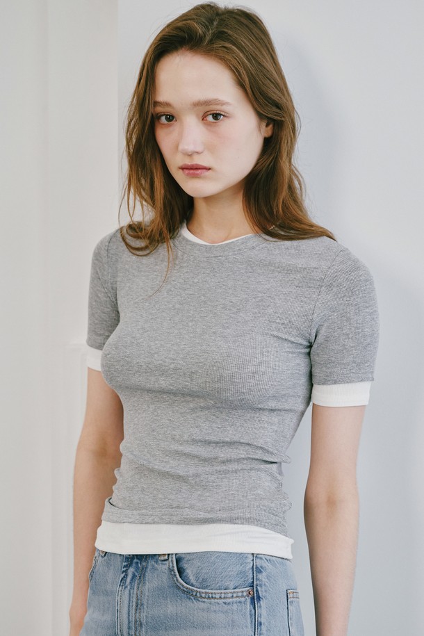 컬러매칭 하프 슬리브 티셔츠 - 멜란지그레이 / Color Matching Half Sleeve T -Shirts - Melange Gray