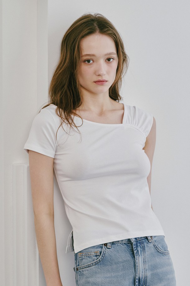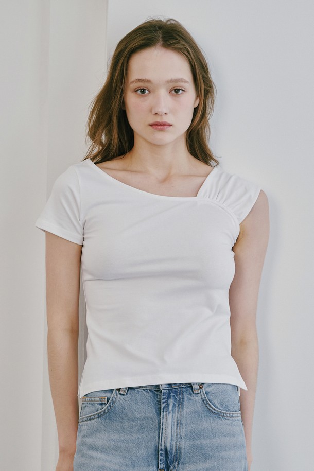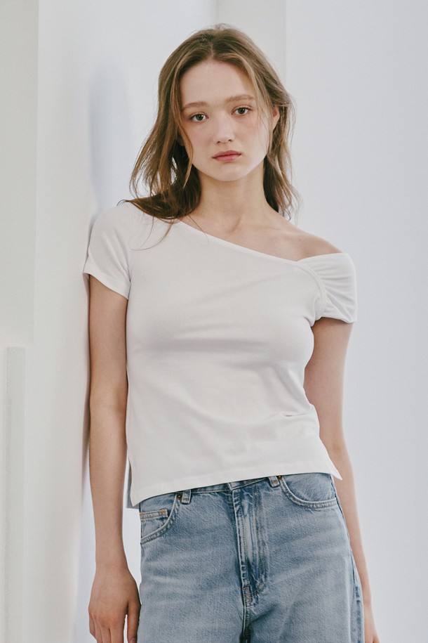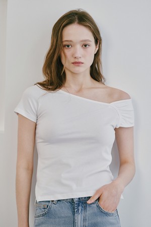 언발 오프숄더 티셔츠 - 화이트 / Unbal Off Shoulder T-Shirts - White