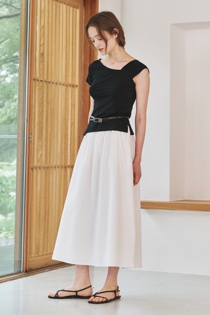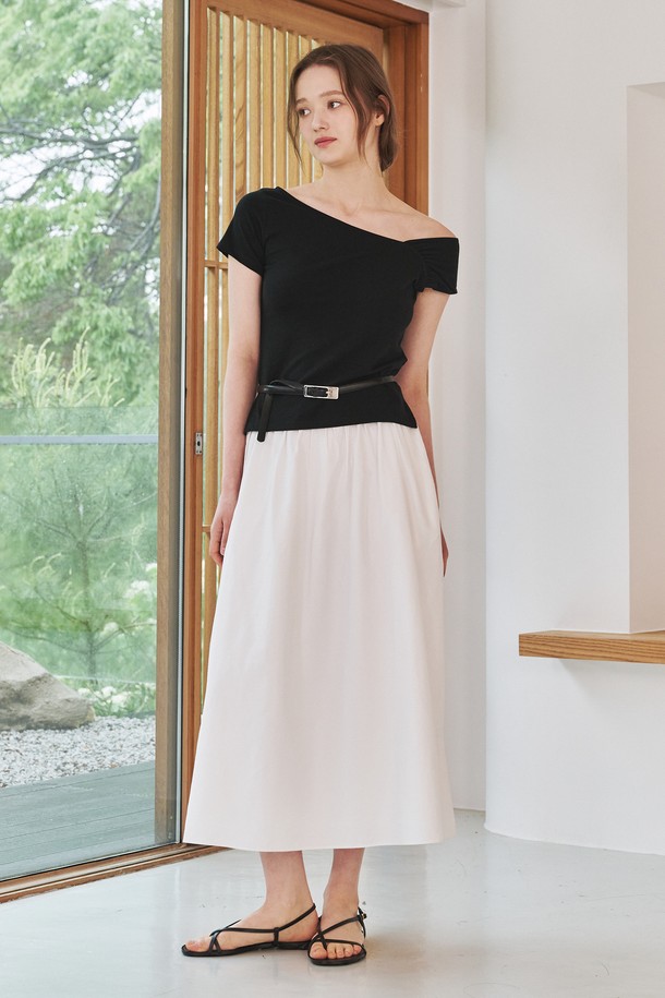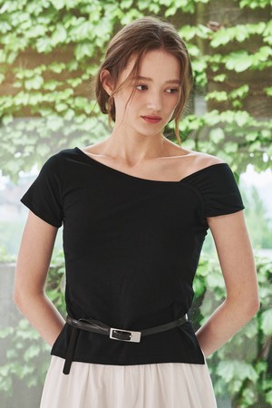 언발 오프숄더 티셔츠 - 블랙 / Unbal Off Shoulder T-Shirts - Black