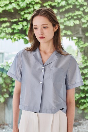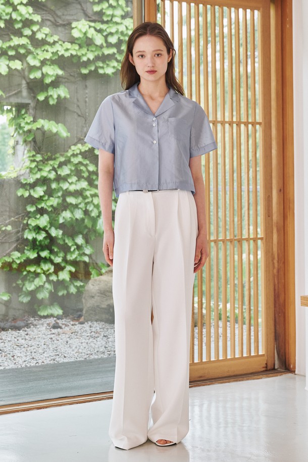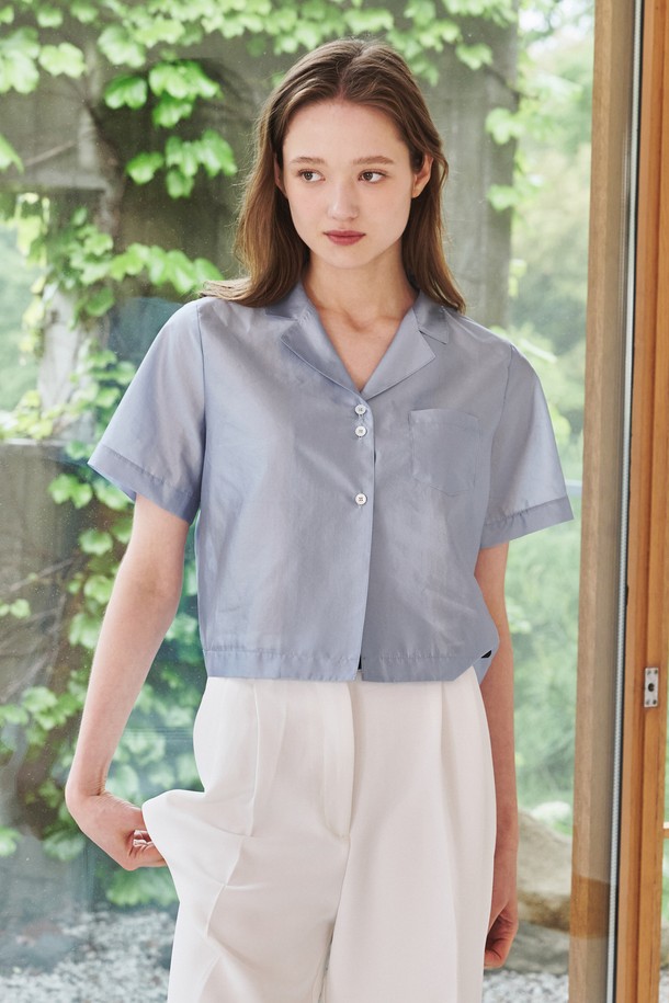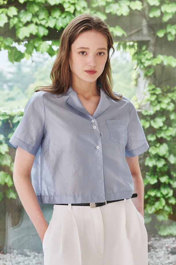 노치드 카라 크롭 블라우스 - 스카이 블루 / Notched Collar Crop Blouse - Sky Blue