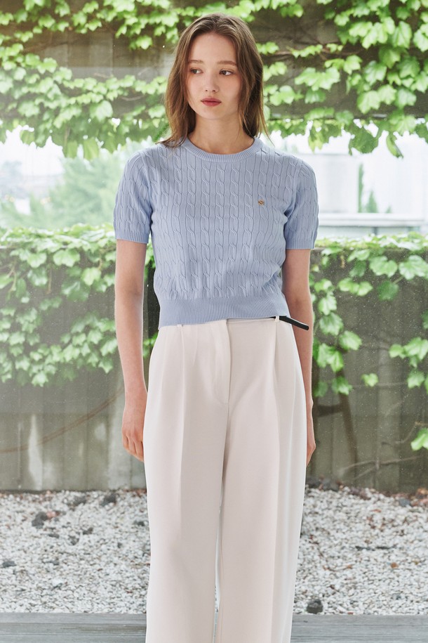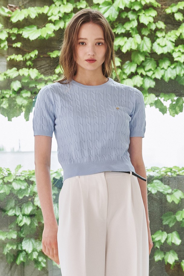 써머 케이블 라운드 니트 - 스카이블루 / Summer Cable Round Knit - Sky Blue