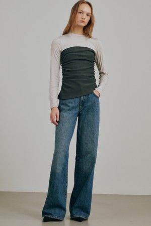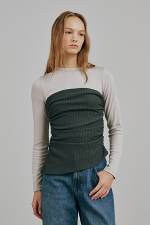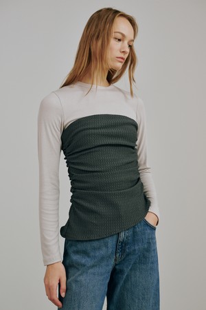 뷔스티에 탑 +롱슬리브 셋트 - 그레이 / Bustier Top + Long Sleeve Set - Gray
